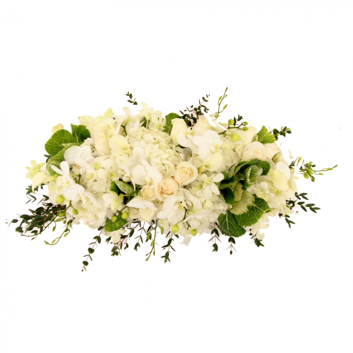 white flowers in a wooden rectangular box, perfect for centerpieces